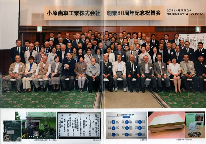 ●平成27年(2015)4月22日に「小原歯車工業㈱創業80周年 記念式典」を小原信治相談役(二代目社長)が主催で、工場見学後、川口市民ホール