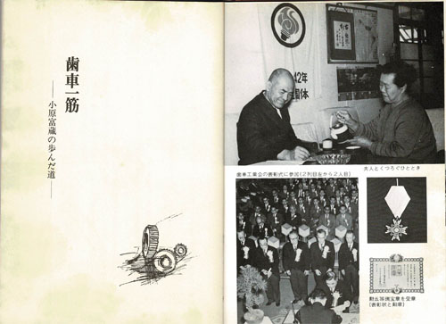 ●「歯車一筋 小原富蔵が歩んだ道」は、創業者小原富蔵の十三回忌法要(昭和53年7月)時に発行者小原信治様(創業者の長男)、編集制作プロジェクトオーガン社の住吉順二様が行ないました。