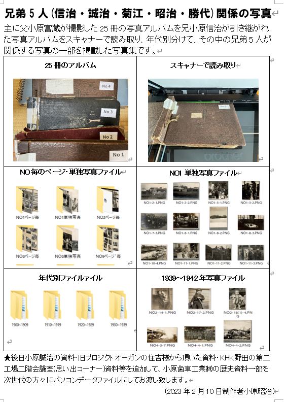 ●写真アルバムの整理手順の動画「小原五人兄弟の歩み(2023.2.10 3分間)